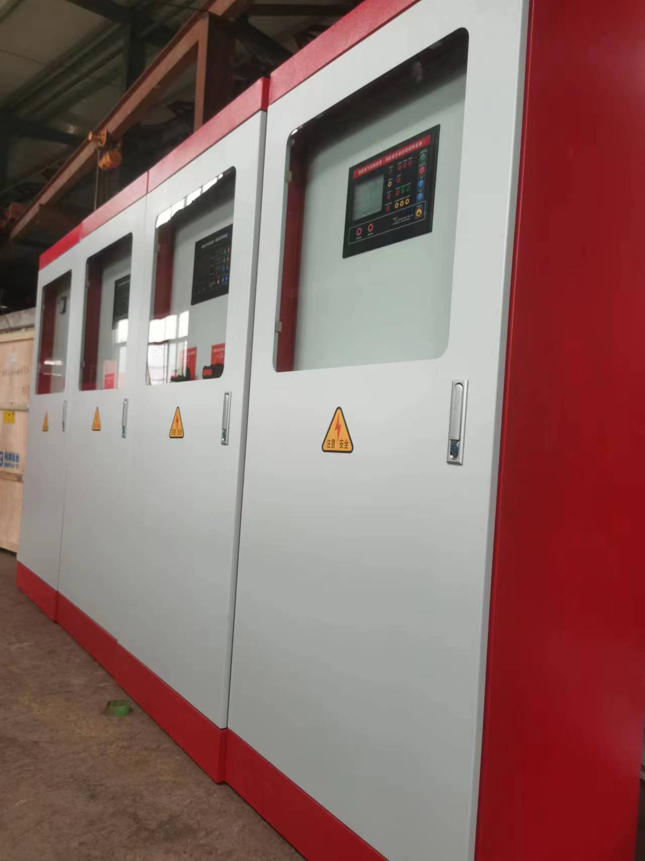 X型:消防專用控制。本型按國家消防規范設計。消防、噴淋泵的啟動可由①機箱面板手動,②消火栓按鈕啟動,③壓力開關啟動,④消防中心D C24V啟動。